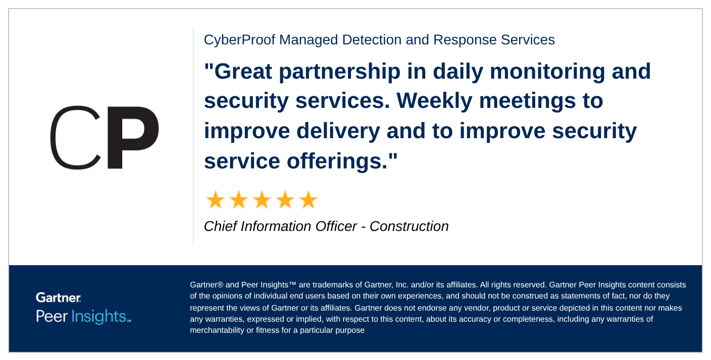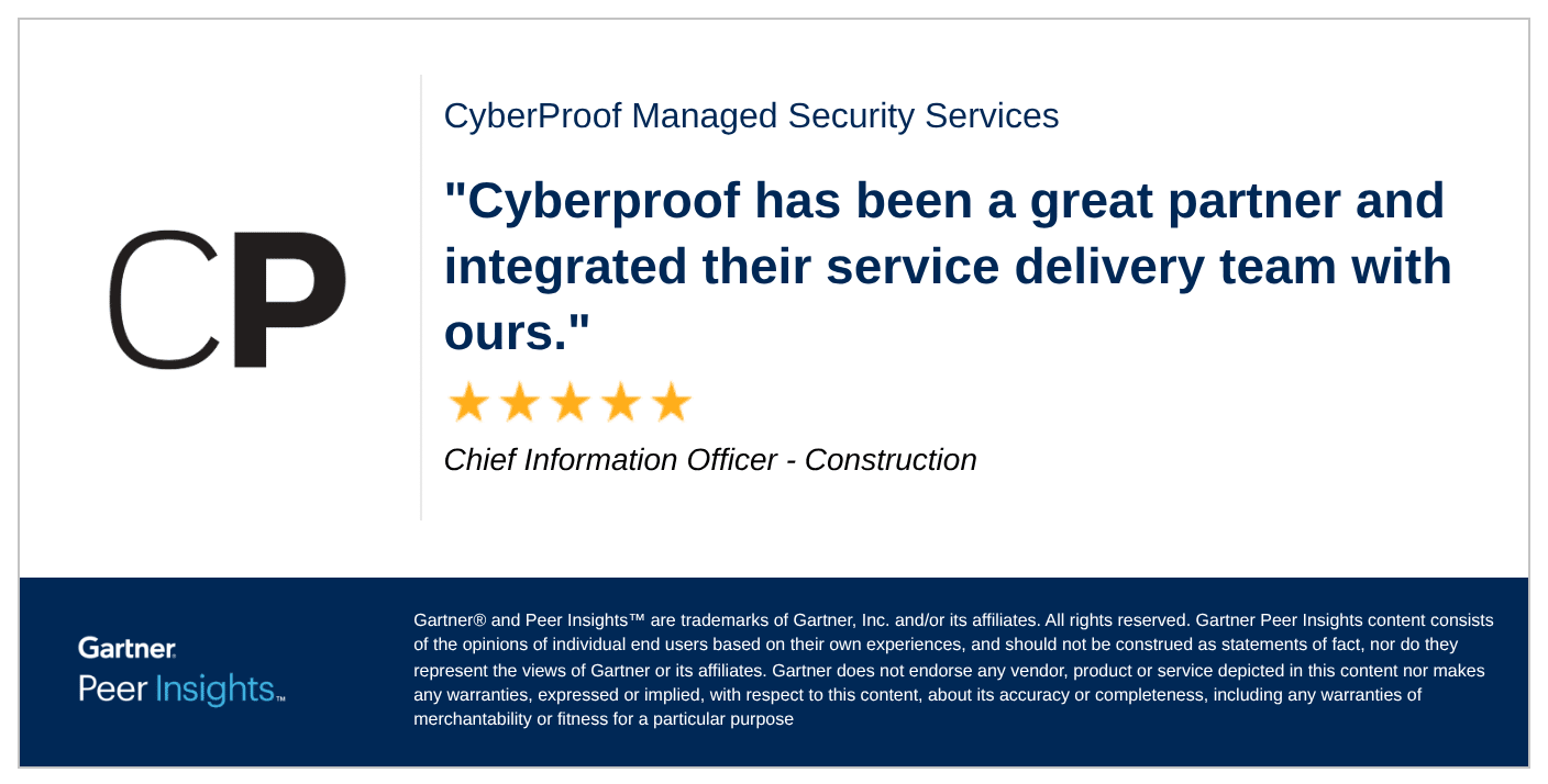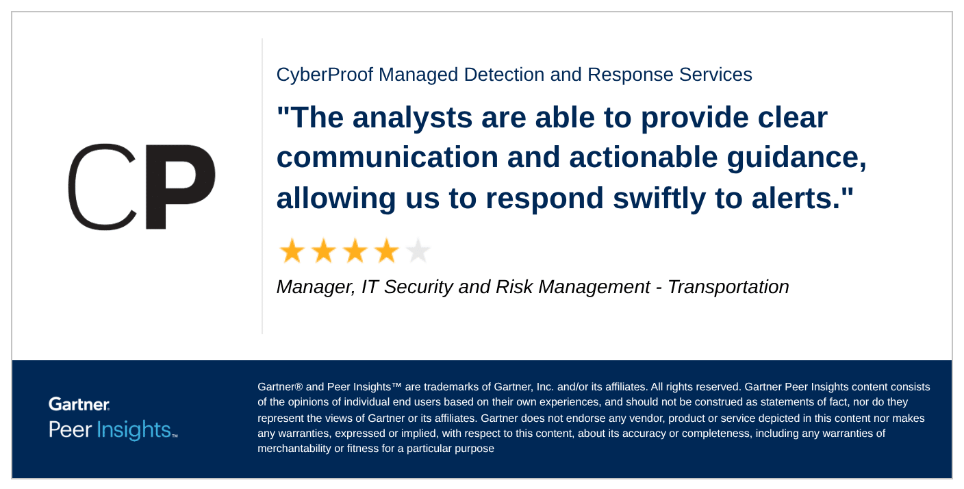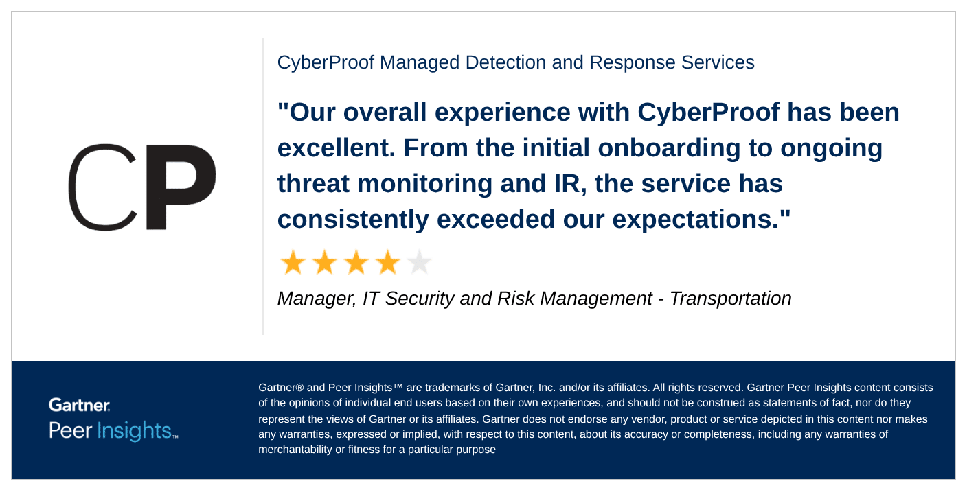 - “CyberProof Team Delivers Proactive Threat Detection and Clear Incident Guidance” Manager, IT Security and Risk Management | 1B-10B USD | Transportation
