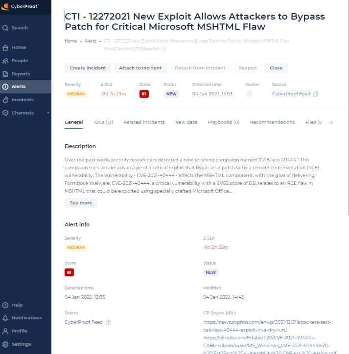 Where CTI alerts are fully integrated with a common orchestration platform, the platform database – which serves as a repository of all the data – can be indexed. CTI updates stored as individual incidents are fully searchable.