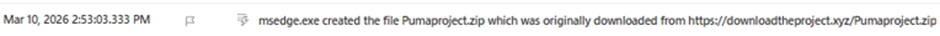During our investigation into an incident, we saw that a user was tricked into downloading a zip archive file by the name of Pumaproject.zip from downloadtheproject [.] xyz.