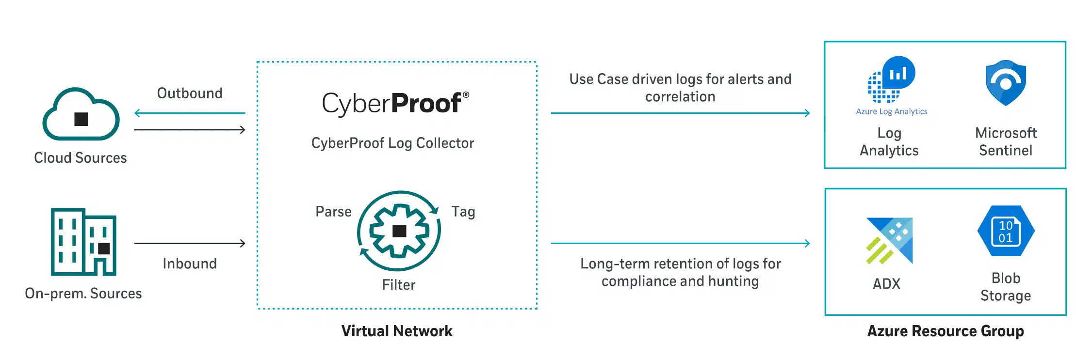 CyberProof supports ingestion of data into native tables, which means that any enterprises utilizing the CyberProof Log Collector and ADX with Sentinel can leverage all of Sentinel’s native capabilities and the Microsoft Community Content.