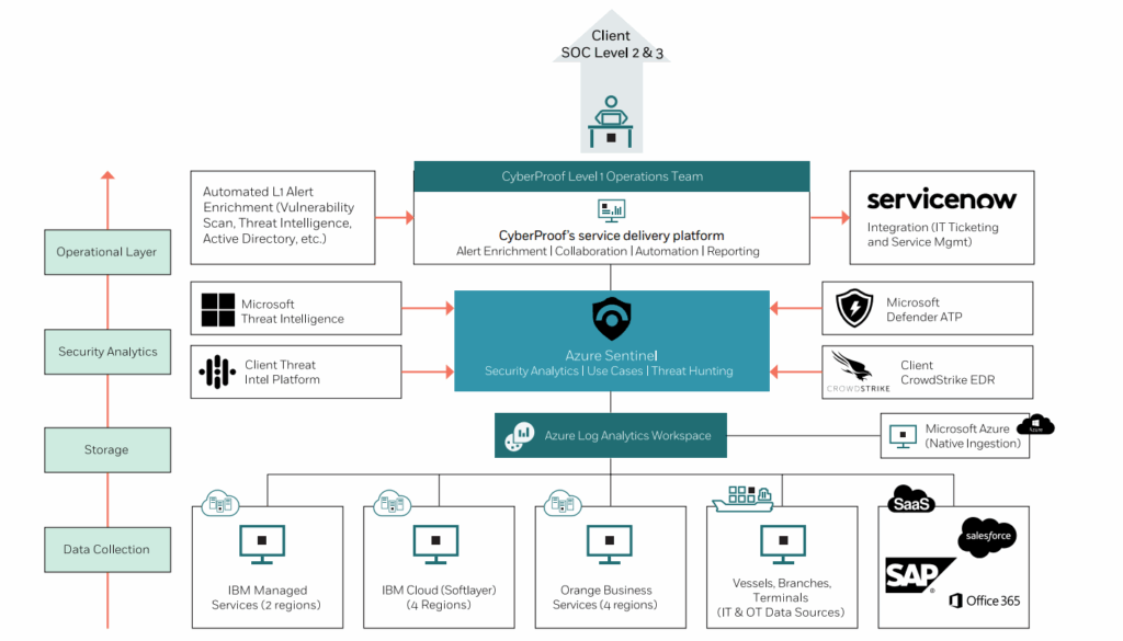 - Collaborative visibility via the service delivery platform provided a single view of SOC operations for both client and CyberProof analysts.